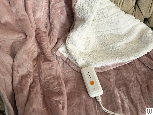 This heated blanket has a ribbed texture that makes it feel thick, and that texture helps mask the internal heating components and wires that are sometimes easy to notice in non-textured blankets. It’s soft on both the polyester and sherpa sides. There are 27 colors and patterns to choose from, it’s lightweight, and it offers 10 heat settings with automatic shutoff timers that run up to 10 hours. It’s also machine-washable. It takes a little longer to heat up than some other blankets, but not so long as to be inconvenient. If you want more interesting colors or patterns, this blanket is worth checking out.