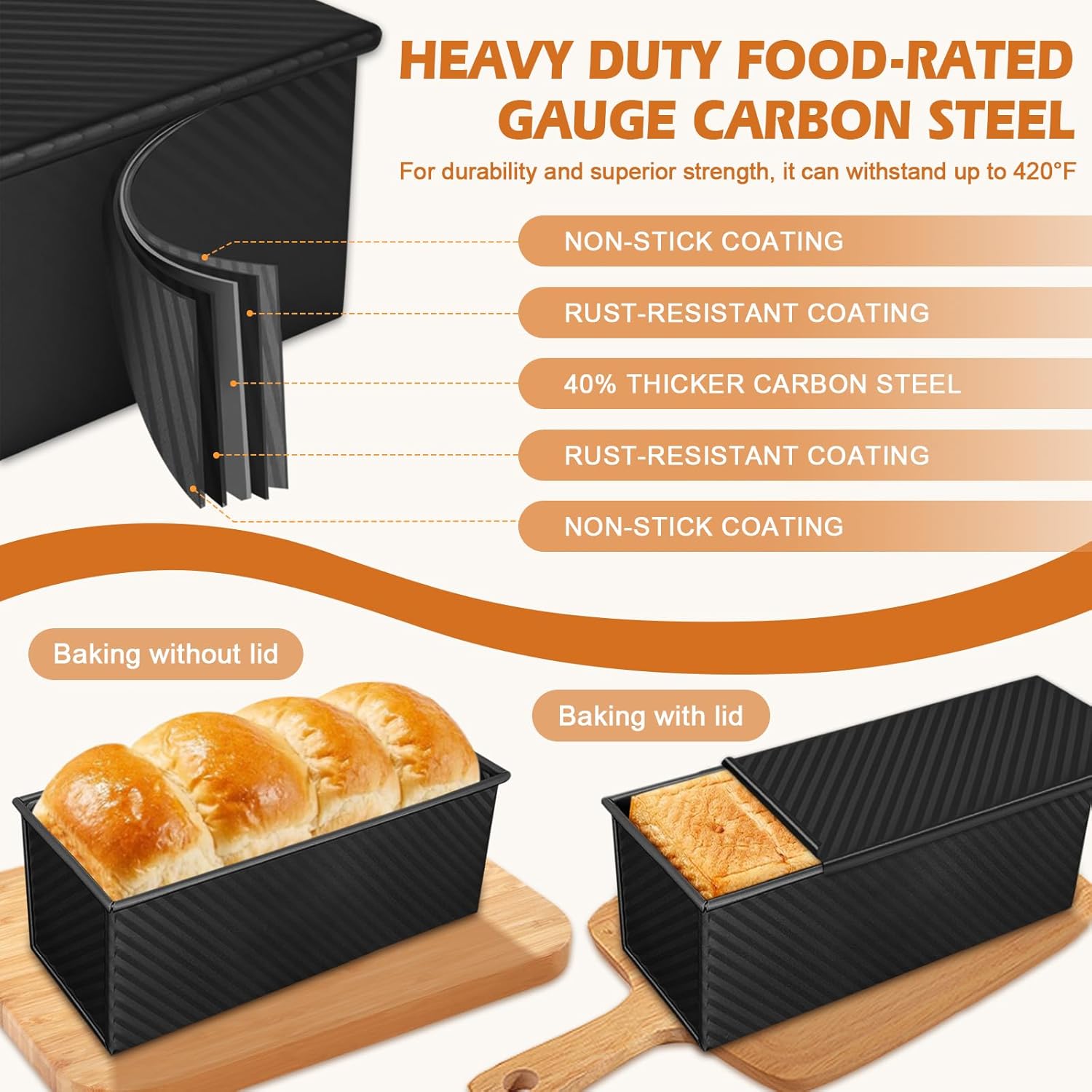 Perfect Shape and Texture: The square loaf pan with lid helps shape uniform slices with smooth edges, ideal for sandwich bread and toast. The pullman pan with lid traps steam during baking, creating a soft, delicate crumb — perfect for pain de mie or molde para pan de caja, this pan ensures consistent results.