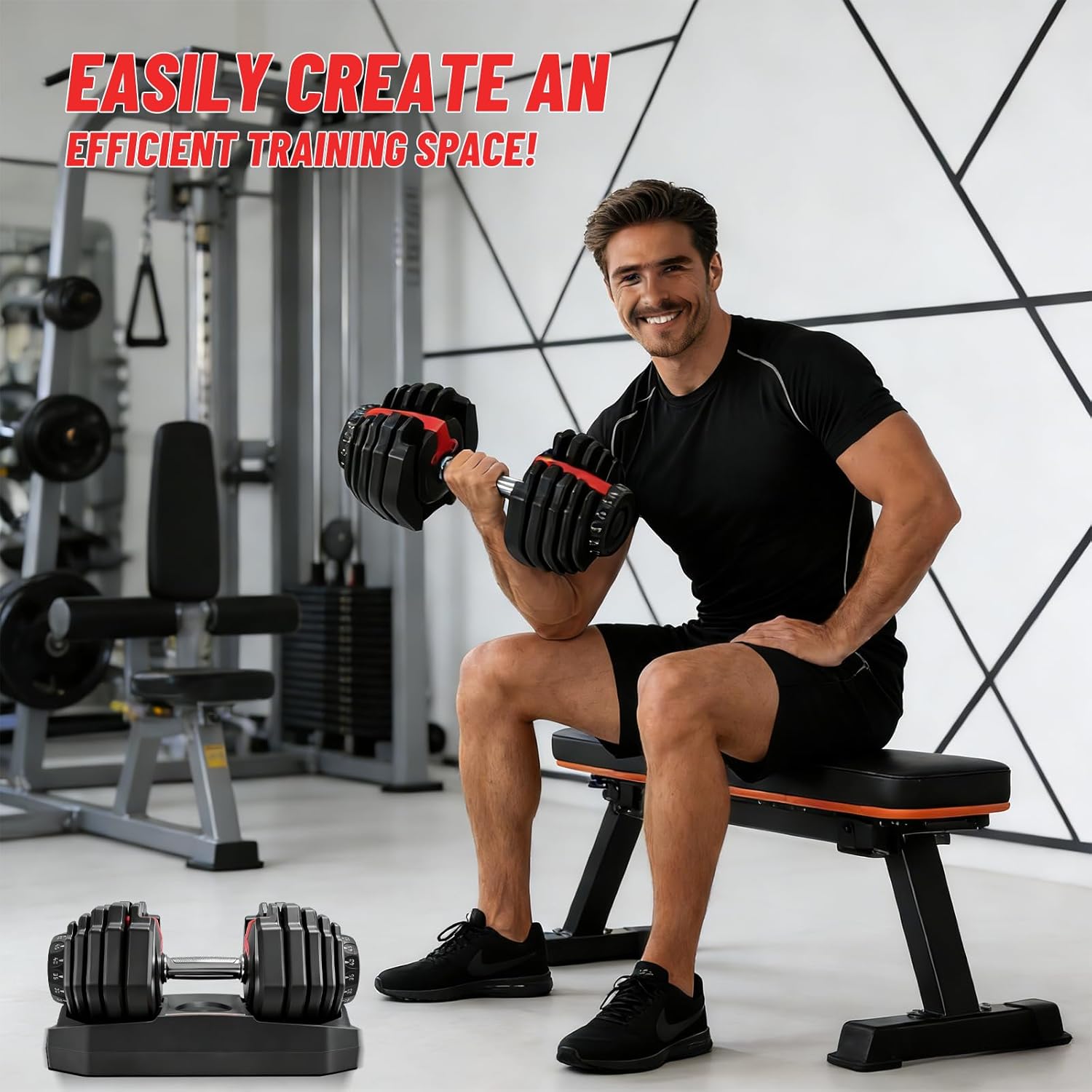 【Quick & Convenient Weight Adjustment】 No more time wasted on complicated adjustments! With our unique one-handed rotating dial system, you can instantly select your preferred weight in just 1 second. This innovative design eliminates the hassle of knobs, pins, or levers, ensuring a seamless transition between exercises and maximizing your workout efficiency.