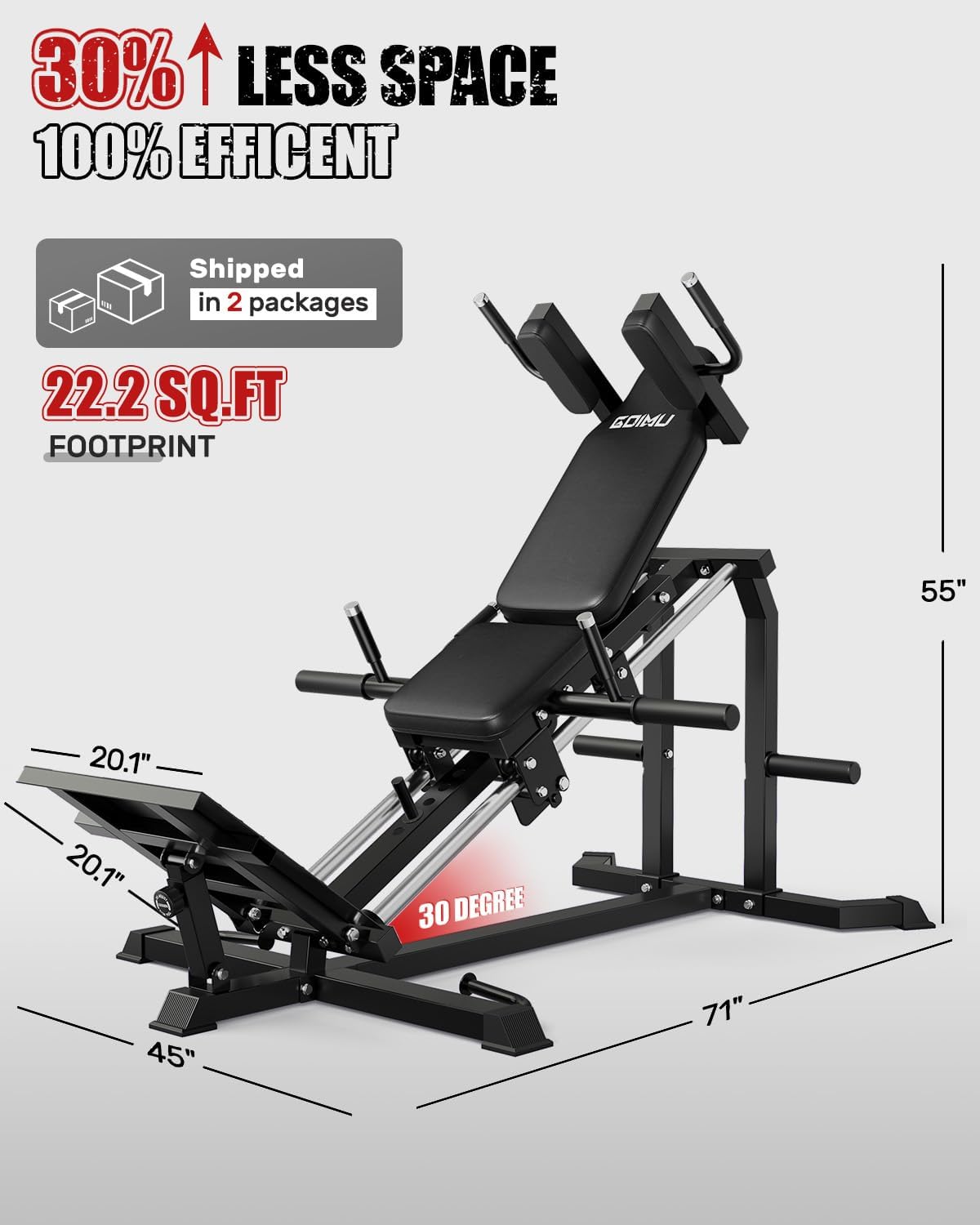 Goimu L5’s 30° angle it allows for a deeper range of motion to maximize glute and quad activation.