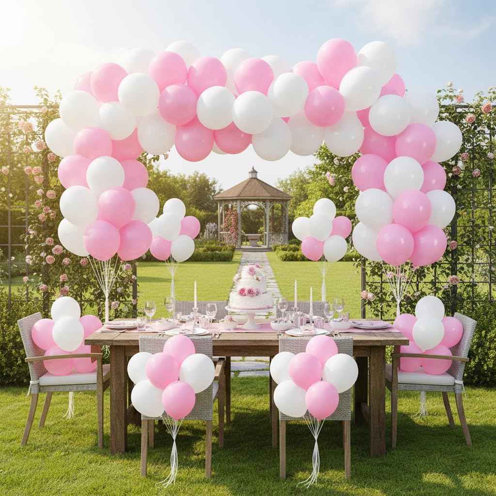 LovesTown 220PCS Balloon Set – 110PCS Each of Pink and White 12″ Latex Balloons with Ribbon for Birthday Baby Shower Wedding Party Decorations