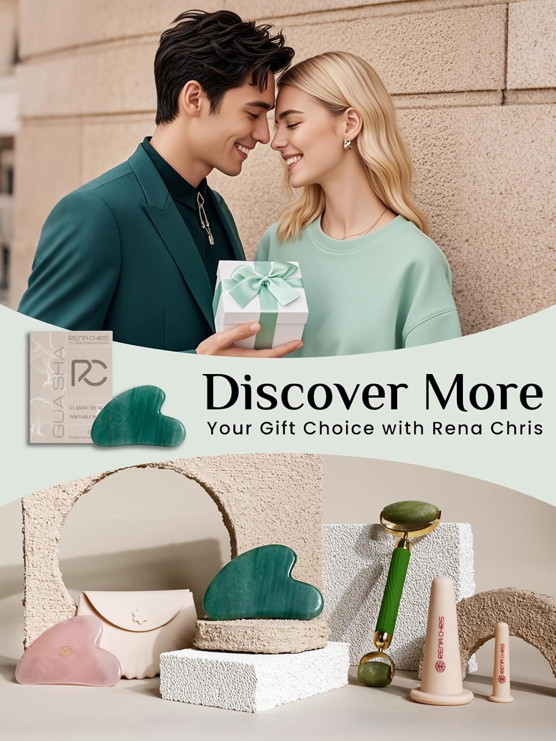 Rena Chris Gua Sha Facial Tools: Jade Stone Guasha Tool for Face Acupuncture Therapy, Facial Massager for Jawline Sculpting and Puffiness Reducing (Green)