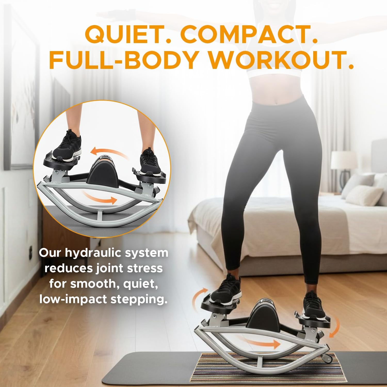 【Smooth, Silent Stepping for Any Home Workout】Engineered with premium hydraulic technology for quiet operation, this stepper machine ensures near-silent exercise sessions. Its fluid rocking motion makes it the ideal equipment for apartments, shared homes, or late-night fitness routines without disturbing others, perfect for home workout enthusiasts.