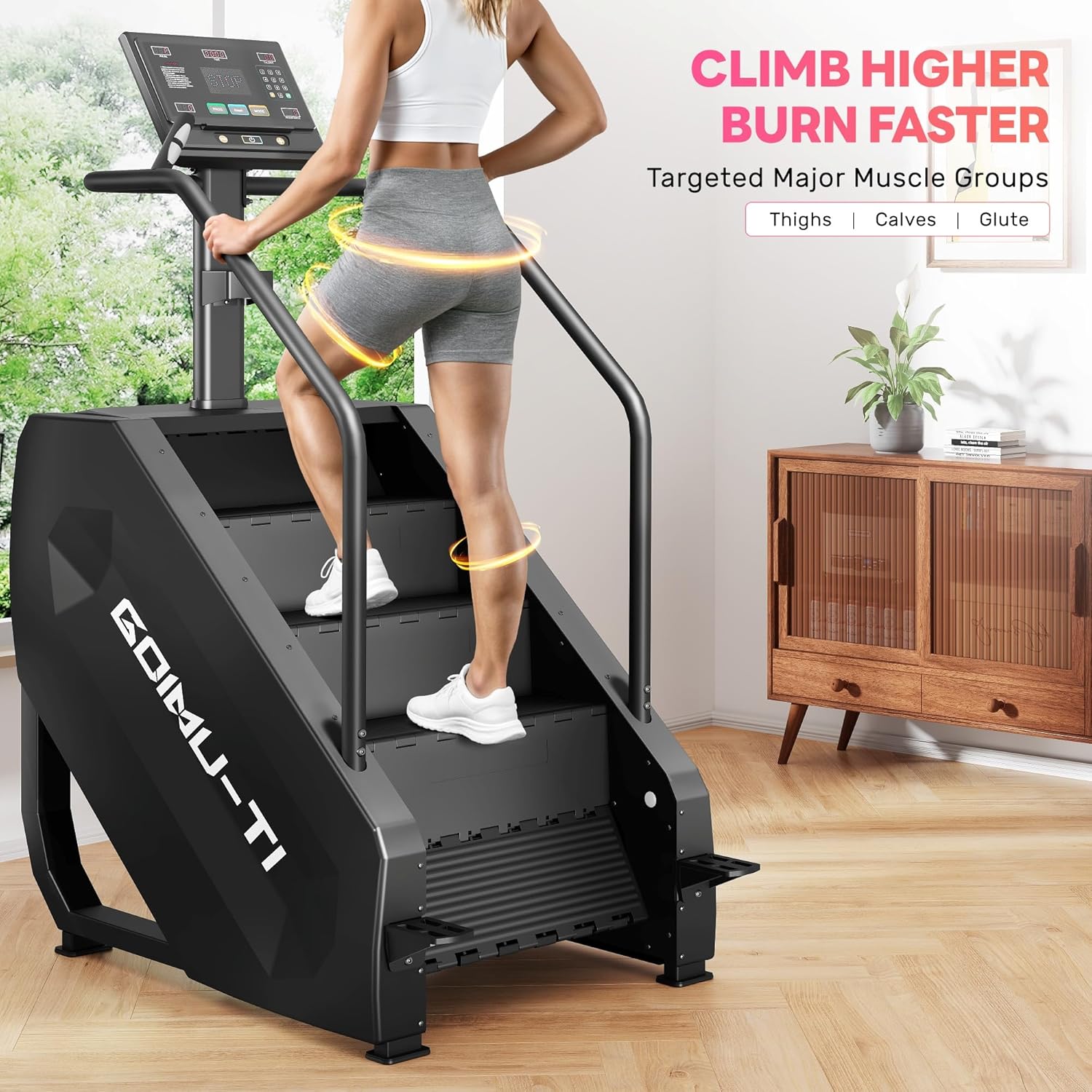 【Commercial-Grade Durability】Crafted with Commercial-Grade heavy-duty alloy steel and premium rust-resistant materials, the Goimu T1 stair stepper is built to last. Supporting up to 550 lbs, it ensures unwavering stability during intense workouts. The reinforced base and anti-slip foot pads minimize noise and vibration, making it ideal for home use.
