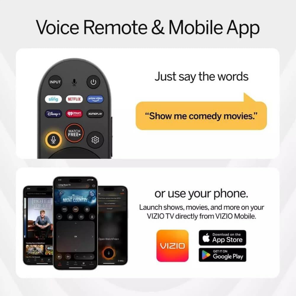 Smart TV Features with VIZIO Home & WatchFree+: Access a vast library of apps and free content through VIZIO Home and WatchFree+, offering 275+ live channels and 15,000+ on-demand titles.